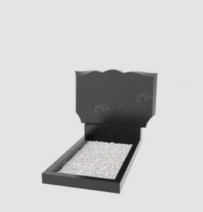 Горизонтальный гранитный памятник с вырезом в форме раскрытой книги, с сужением к низу. Цена указана за изделие стандартной комплектации (стела+постамент+цветник) с учетом полировки. Возможно изменение размеров под заказ или изготовление из других пород камня. В стоимость не входит оформление и установка.