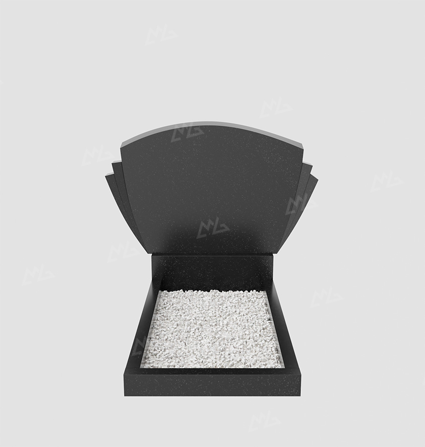 Горизонтальный гранитный памятник с округлым верхом со ступенчатыми вырезами по бокам. Цена указана за изделие стандартной комплектации (стела+постамент+цветник) с учетом полировки. Возможно изменение размеров под заказ или изготовление из других пород камня. В стоимость не входит оформление и установка.