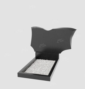 Горизонтальный гранитный памятник с округлыми вырезами, асимметричный. Цена указана за изделие стандартной комплектации (стела+постамент+цветник) с учетом полировки. Возможно изменение размеров под заказ или изготовление из других пород камня. В стоимость не входит оформление и установка.