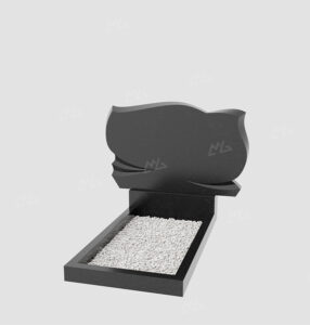 Горизонтальный гранитный памятник в форме бутона с вырезами внизу. Цена указана за изделие стандартной комплектации (стела+постамент+цветник) с учетом полировки. Возможно изменение размеров под заказ или изготовление из других пород камня. В стоимость не входит оформление и установка.