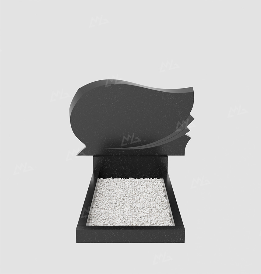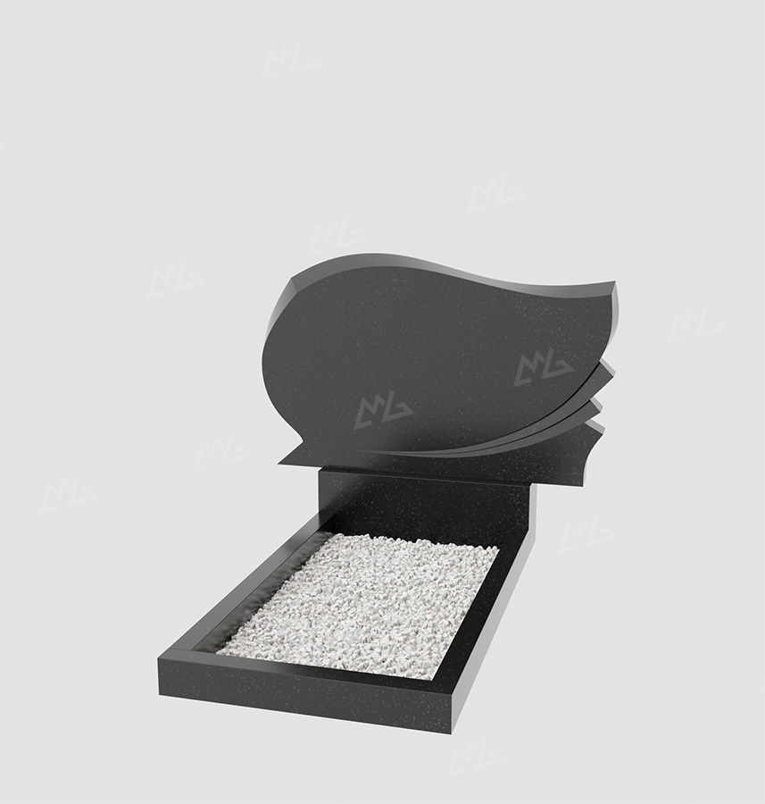 Горизонтальный гранитный памятник в форме волны с закруглением и ступенчатыми вырезами. Цена указана за изделие стандартной комплектации (стела+постамент+цветник) с учетом полировки. Возможно изменение размеров под заказ или изготовление из других пород камня. В стоимость не входит оформление и установка.