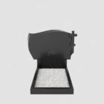 Горизонтальный гранитный памятник с вырезом в форме волны, с крестом. Цена указана за изделие стандартной комплектации (стела+постамент+цветник) с учетом полировки. Возможно изменение размеров под заказ или изготовление из других пород камня. В стоимость не входит оформление и установка.